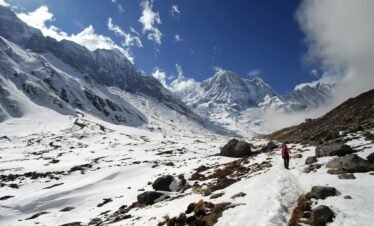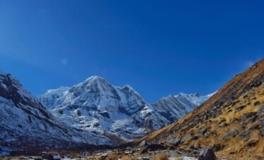 A scenic trek into the heart of the Annapurna Sanctuary, surrounded by towering peaks like Annapurna I (8,091 m) & Machapuchare.